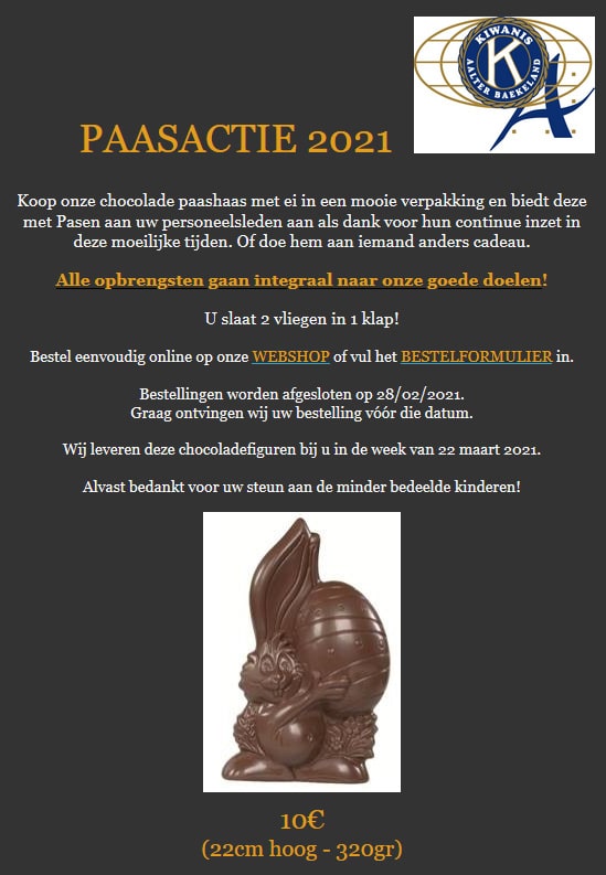 Kiwanis Aalter Kalender: Paasactie 2021, bekijk ook het vorig kalender-item Kiwanis Cabriotour 2022 of het volgend kalender-item Kiwanis Comedy 2019 - Keukengeheimen